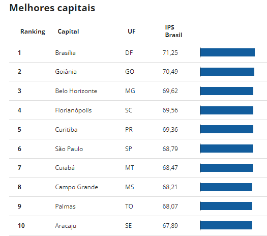 Palmas aparece em nono, no ranking das capitais com melhor qualidade de vida,segundo o IPS Brasil